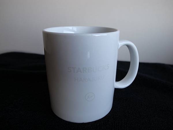 純白的杯身印上簡單STARBUCKS HARAJUKU字樣與星巴克綠色LOGO(如下圖)